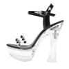 Damenschuhe, modische High Heels, Nachtclub-Sandalen mit Strass-Kristallen und Blumen, klobiger Absatz, Serie 10365, 14 cm Absatz, 4 cm Plateau LFD