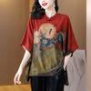 Loses Seidenoberteil in Übergröße für Damen, Sommerbluse und Hemd mit grünem Aufdruck im Vintage-Stil