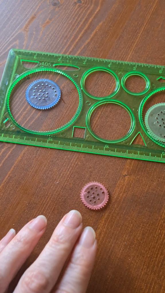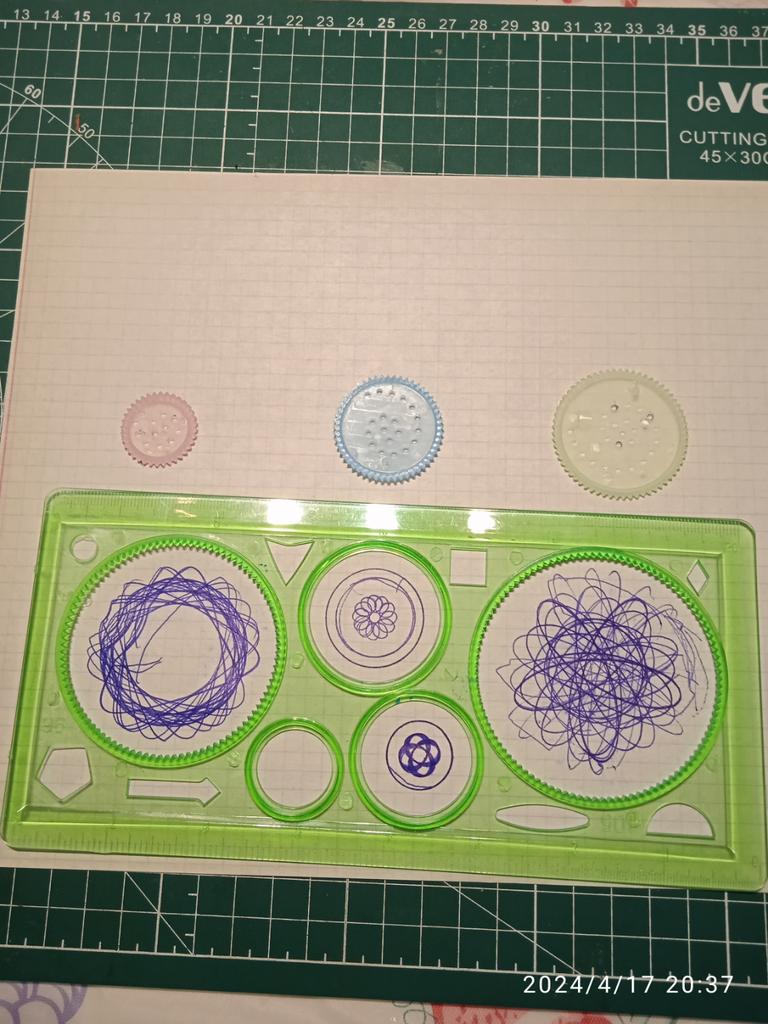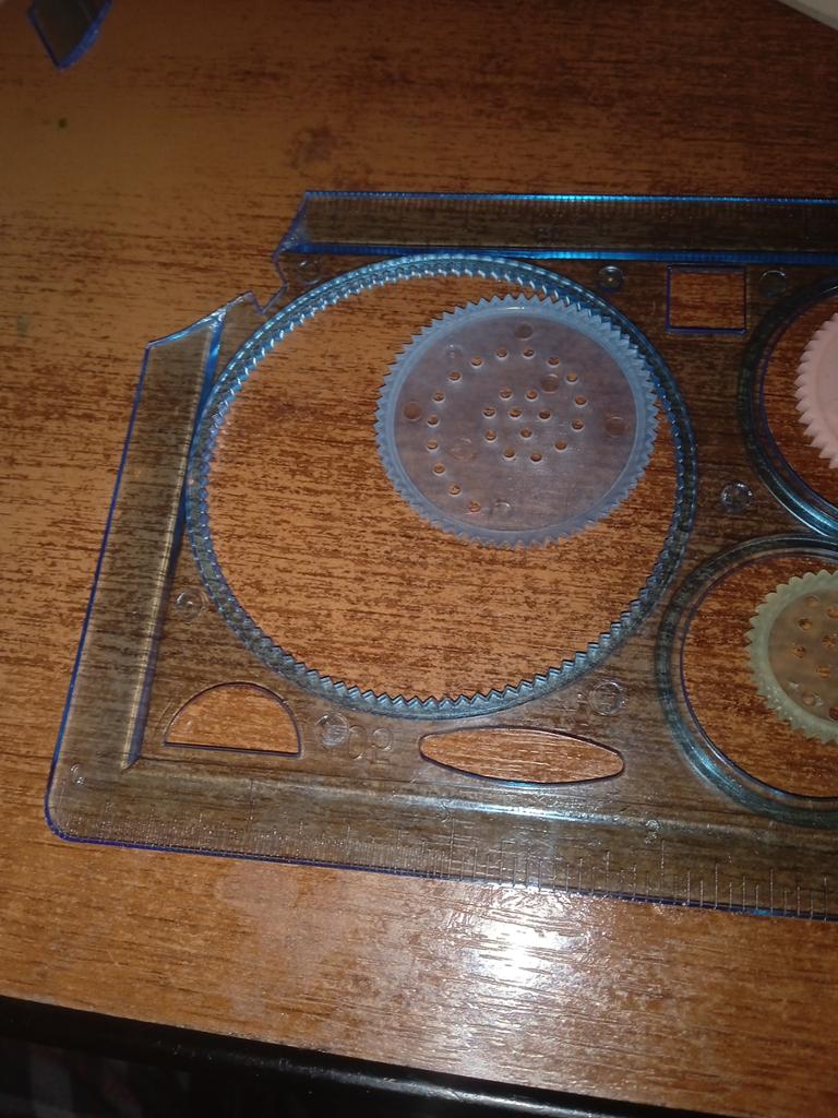 Lineal, verschiedene Kreise und spezielle Löcher zum Zeichnen. Ich habe es ausprobiert, das ist dabei herausgekommen, man muss sich daran gewöhnen. Danke Joom 👍