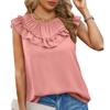 Sommer Rüschen Locker Ärmellos Weiße Hemden Damen Elegant Lässig Chiffon Bluse Damen Einfarbig O-Ausschnitt Oberteile Hemd Blusas 25556