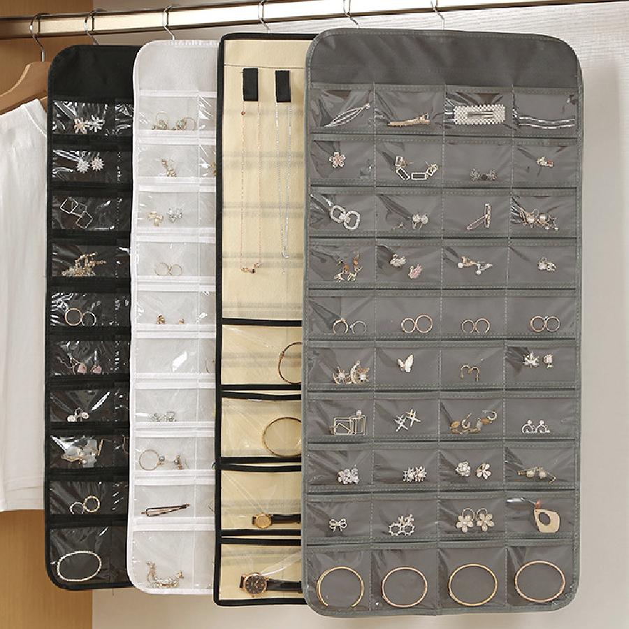 Hängender Schmuck-Organizer mit Aufhänger, Metallhaken, ein-/doppelseitiger Schmuckhalter für Ohrringe, Halsketten, Ringe am Schrank, an der Wand, an der Tür