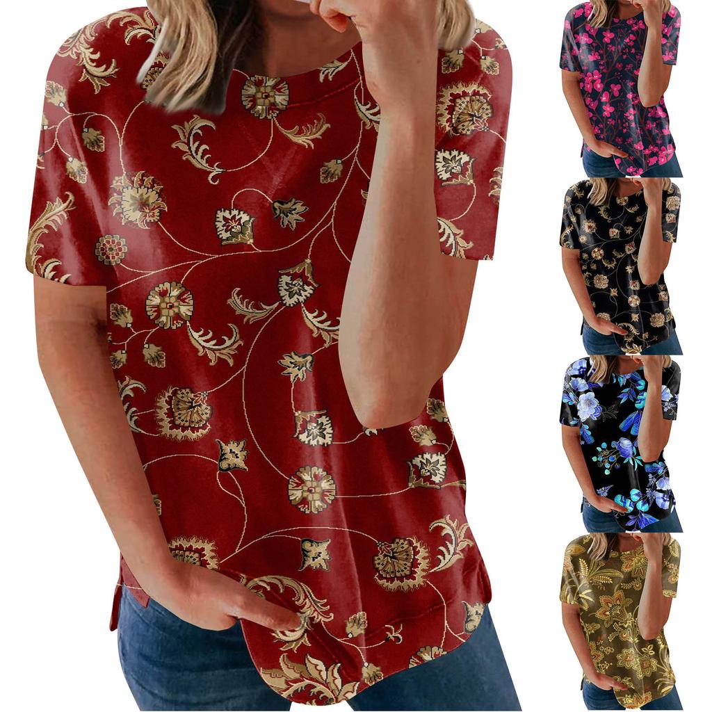 Damen bedrucktes Kurzarm-Rundhals-Retro-Kurzarm-Sommer-Lose-Top, Oberteile, Damen-Sommer-T-Shirts