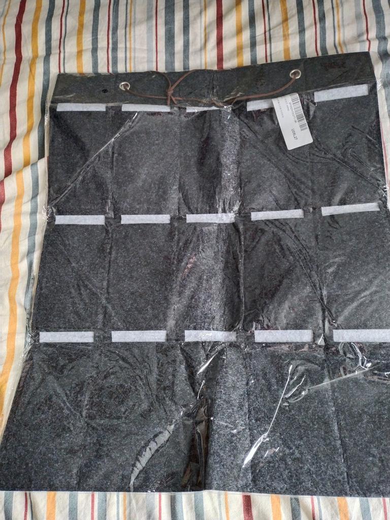 Nicht viel, nicht durchdacht. Oben ist eine starre Schiene erforderlich, da diese unter dem Gewicht nach innen klappt. Befestigen Sie es mit einem Hosenbügel.