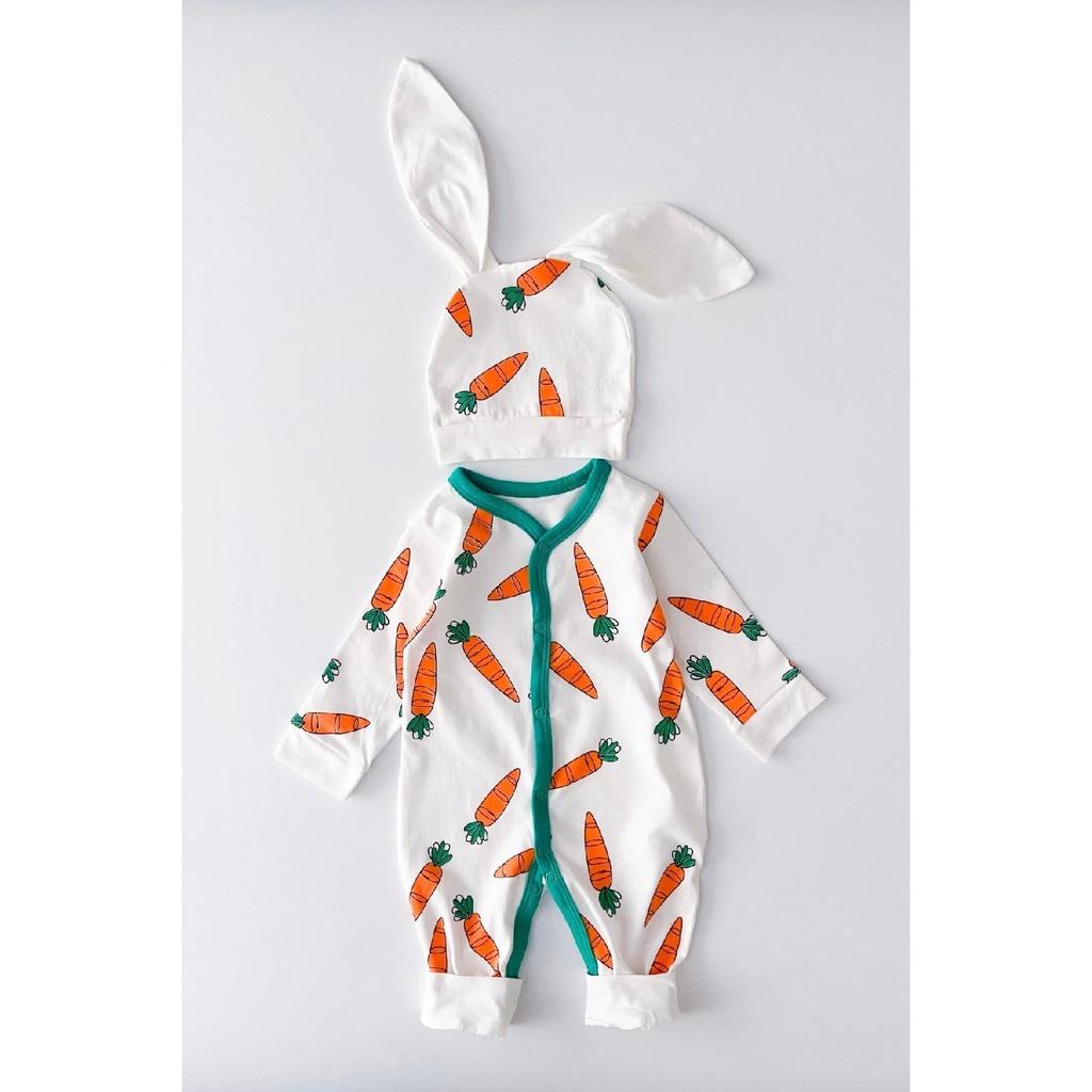 Karottengemusterte Mütze mit Mütze, Babyoverall und Set