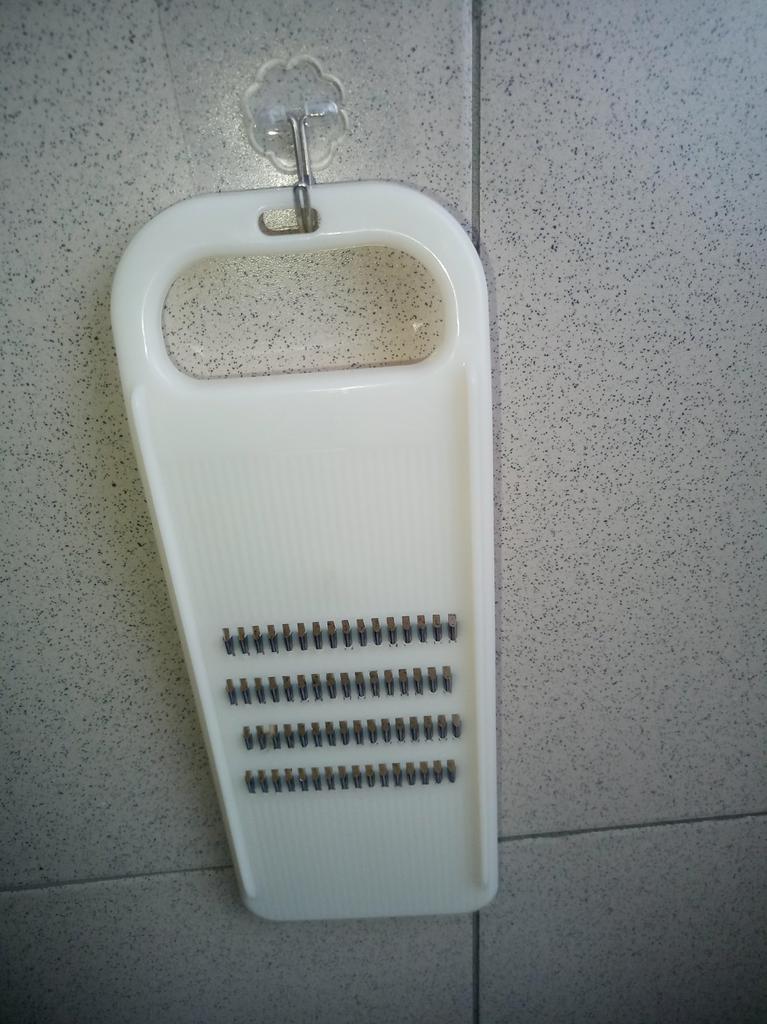 Eine scharfe Reibe reibt gut, aber ich weiß nicht, wie viele ausreichen, da der Körper aus Kunststoff ist und sich ein wenig verbiegt. Ich bedaure, keine Holzreibe genommen zu haben