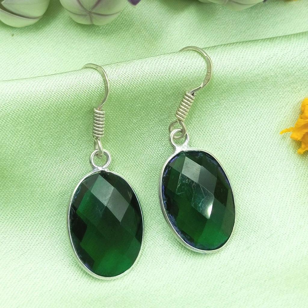Grüner Topas Edelstein 925 Sterling Silber vergoldet Haken Damen Ohrringe Schmuck WHE-E25