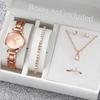 Beliebtes Zubehörset für Damen, Legierung, Quarzuhr, Halskette, Ring, Kombination, Armbanduhr, luxuriöses 6-teiliges Set, modische Ohrringe, Armband