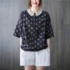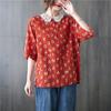 MOJTA Sommer Plus Size Damen Spitzenkragen Bedrucktes Kurzarmhemd Lockeres dünnes T-Shirt