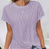 Frauen Sommer Kurzarm O Hals Einfarbig Split Pullover T Shirt Top Bluse