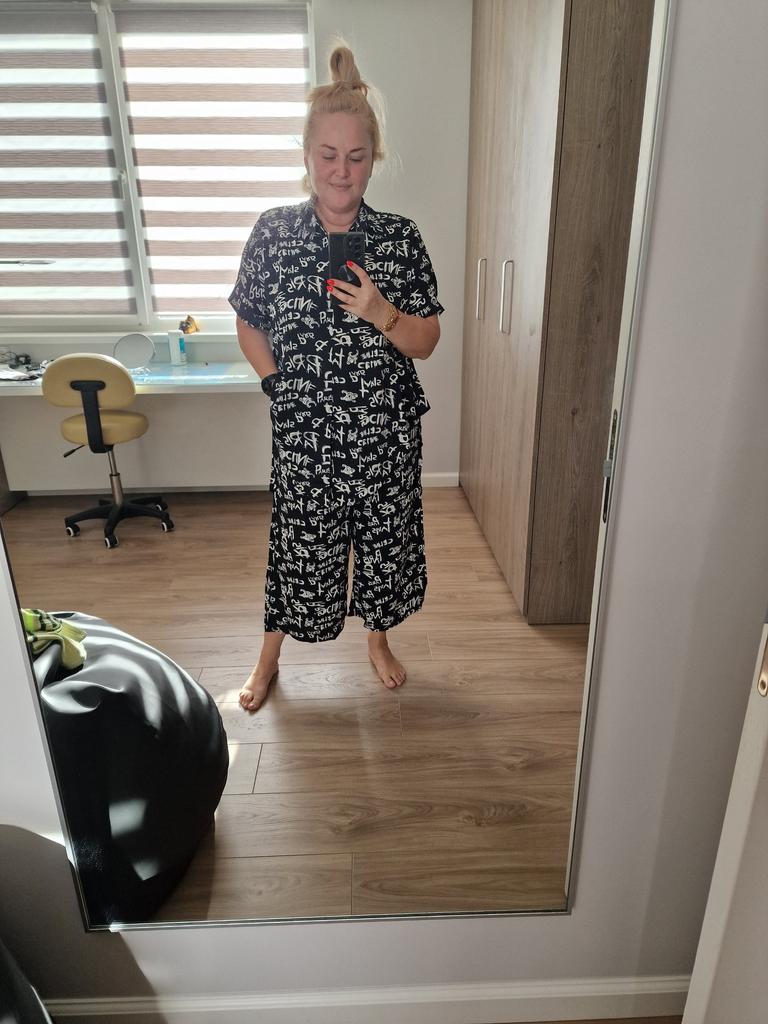 DIMANAF 2023 Plus Size Two Piece Set Suit Women Vinatge Print Tops Pants Letter Female Suit Summer Wide Leg Pants