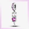 925 Sterling Silber Herz Blume Ballon Flamingo Rosa Charme Plata De Ley Auto Katze Perle Für Neue Armband