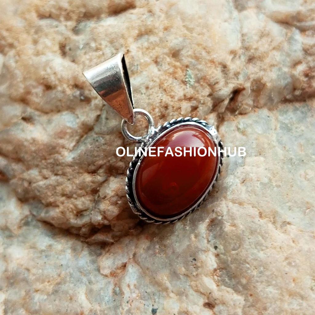 Roter Onyx Edelstein 925 Sterlingsilber Plattiert Oval Anhänger Schmuck NST-P11