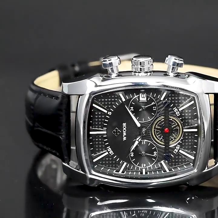 WWOOR Lederarmbanduhr Business New Concept Herrenarmbanduhr Wasserdicht Leuchtende Nadel Quarzuhr