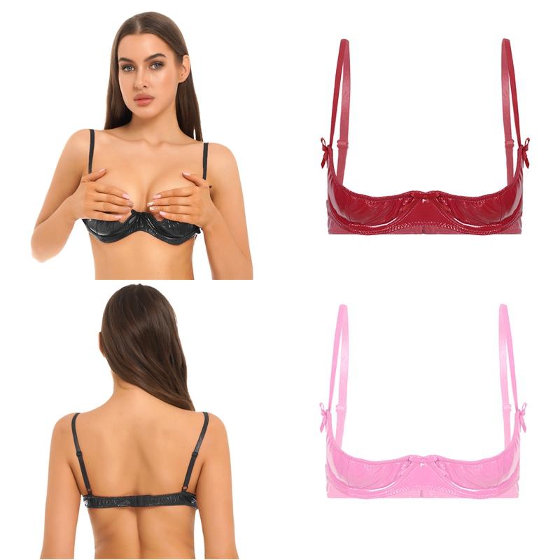 Sexy Damen-Dessous, Lackleder, Bügel-BH, Unterwäsche, ungefütterter Büstenhalter