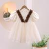 Kinder Sommer Kleidung Kinder Beige Kleid Kurzarm Prinzessin Mesh Kleider Baby Mädchen Süße Kleidung