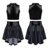 Cheerleading-Tanzkostüme für Mädchen und Kinder mit Metallic-Oberteilen und Rock mit unregelmäßigem Saum