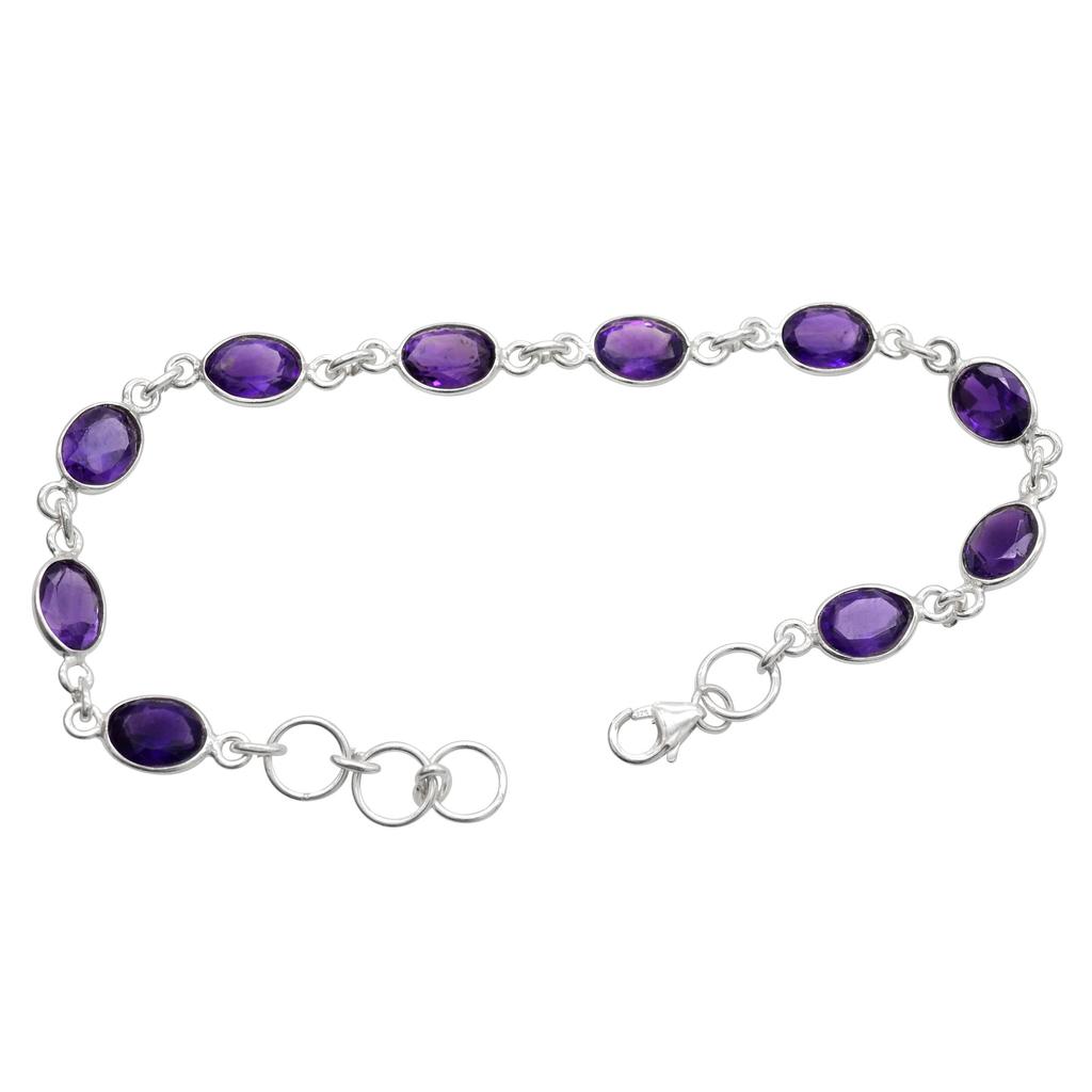 Damen-Armband mit Amethyst-Edelstein, massiv, 925er-Sterlingsilber, handgefertigter Schmuck, 19,1 cm