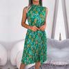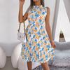 Frauen Frühling Sommer Temperament Holz Ohr Rand Blume Hohe Taille Falten Kleid Damen Mode Ärmellose Kleider