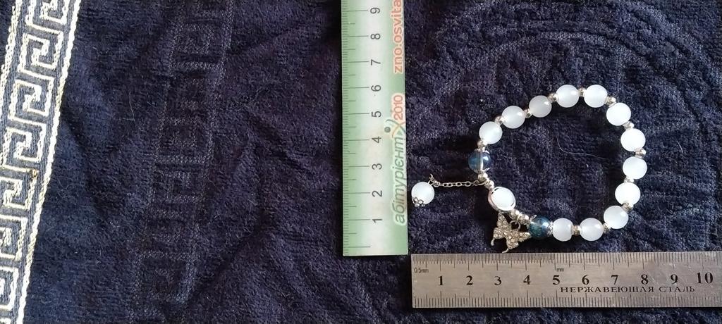 Das Armband passt auf eine dünne Hand. Weiß, ein blauer Farbton wird mit Wärme hinzugefügt. Kein Schaden. Kam früher als erwartet. Ich empfehle 👍🏽