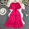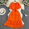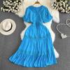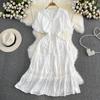 Neue Sommer Frauen V-ausschnitt Puff Kurzarm Dünne Lange Kleid Hohe Qualität Spitze Patchwork Big Hem Vintage Stickerei Kleid