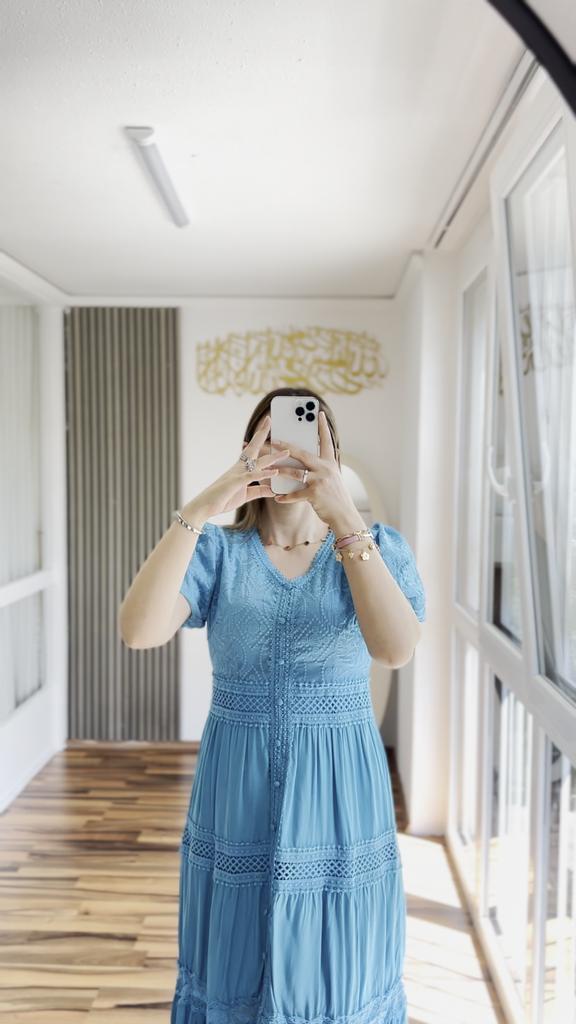 Die Größe passt zu meiner Größe 44, die Qualität des Stoffes und der Verarbeitung ist ausgezeichnet, das Kleid ist ideal für heiße Sommer.