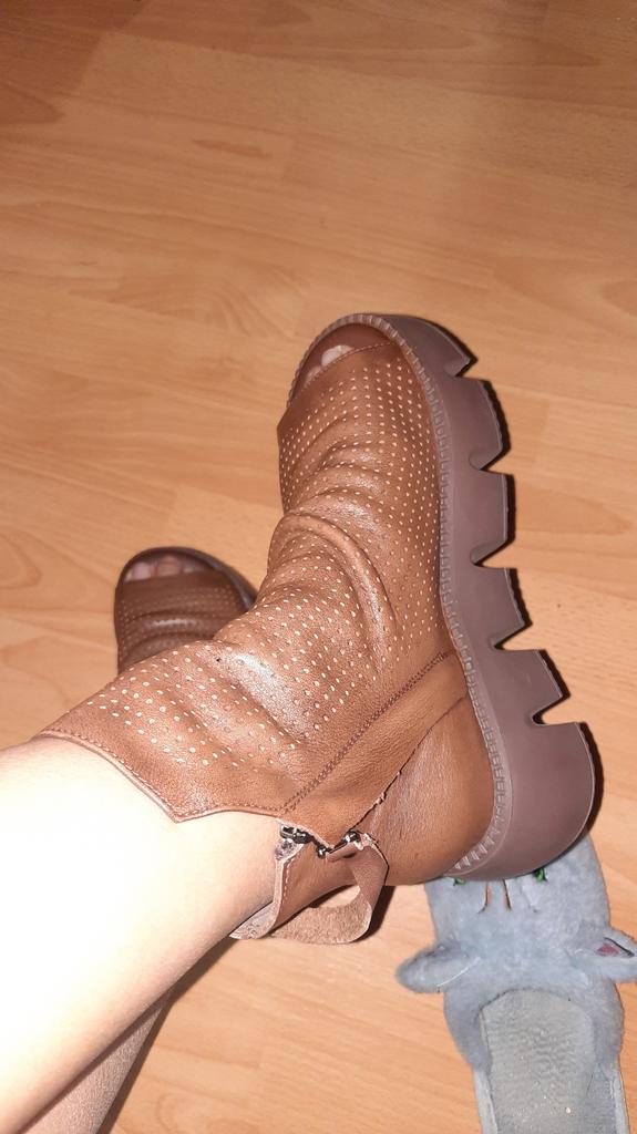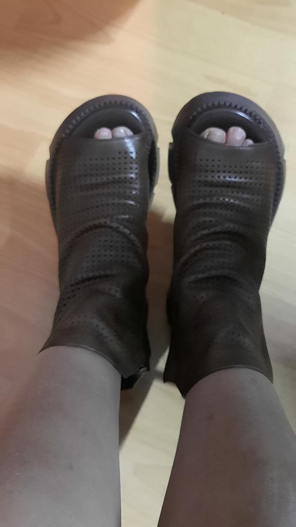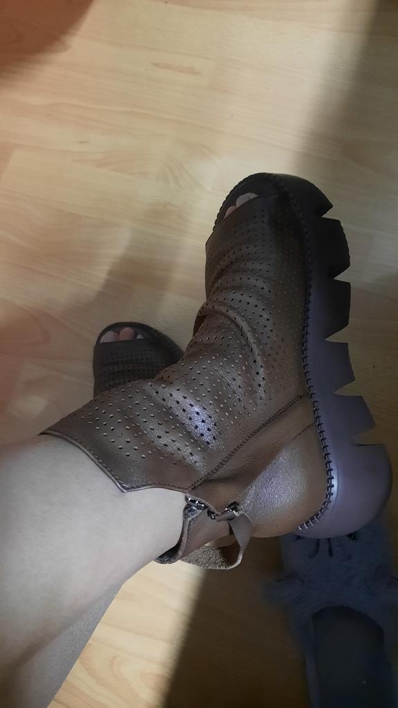 Hübsches, echtes Leder. Sie sind mir etwas groß, 34,5, ich hoffe, sie passen an meinen Fuß, wenn ich sie trage. Auf dem Foto mit und ohne Blitz ist die Farbe in Wirklichkeit zwischen den Bildern durchschnittlich