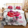 Valentinstag-Home-Bettwäsche, Einzelbett, Doppelbett, voller Größe, Rosendruck, Kissenbezug und Bettbezug, 2/3 Sätze Paar-Schlafzimmer-Bettwäsche