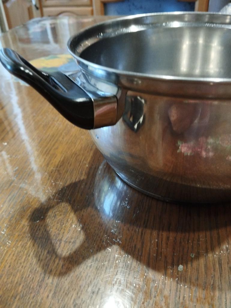 Die Griffe näherten sich der Pfanne. Der Topf ist wie neu.