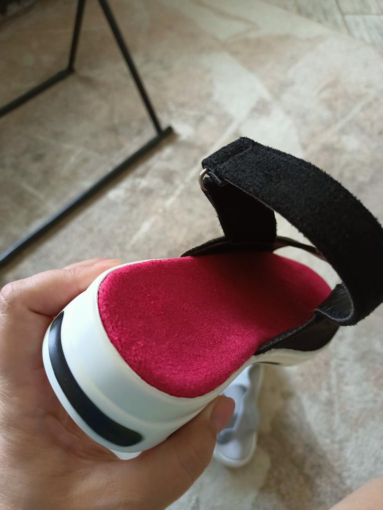 Sehr süße Sandalen. Dicht, aus hochwertigem Kunstleder. Schade ist, dass es auf der Rückseite keinen Gummizug gibt, sodass man ständig am Klettverschluss ziehen muss, aber das war's. Danke an den Verkäufer und Jum.