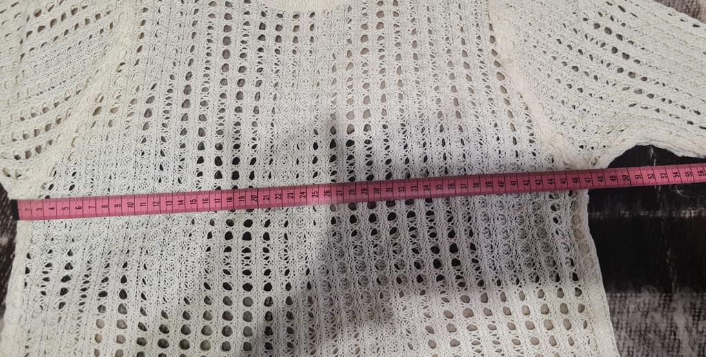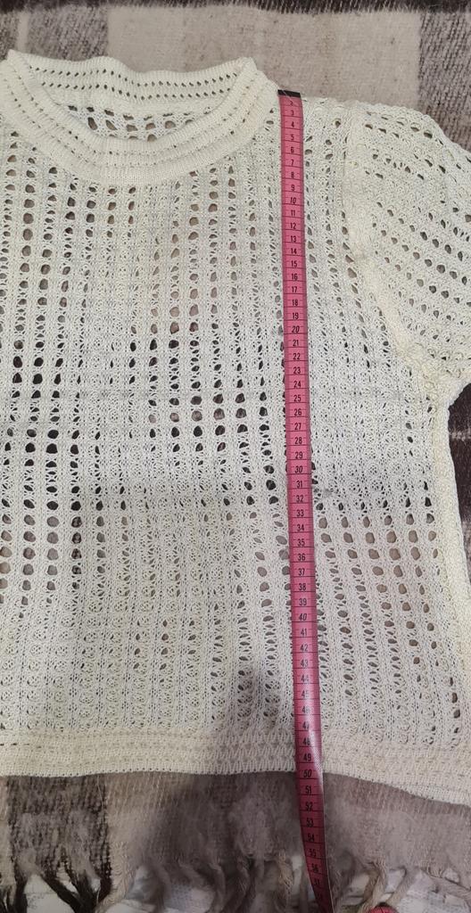 Schöne Bluse, genau richtig für Größe 46. Diese Option eignet sich nicht nur für den Sommer; Sie können ihn wie einen durchbrochenen Pullover auch bei kühlem Wetter, auf Blusen usw. tragen, weil... Hergestellt aus ziemlich warmem Garn.