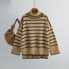 Herbst und Winter Damen Pullover Strickpullover Pullover Clashing Stripes High Neck Loose Casual Pullover