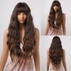 ALAN EATON Braune blonde Highlights Perücke lang gewellt Damen synthetische Perücken mit Pony hitzebeständig Cosplay Haar Perücke für Frauen Afro