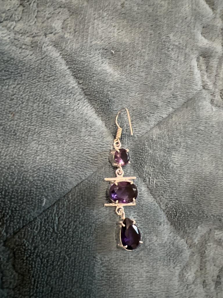 Amethyst-Edelstein, handgefertigter Schmuck, 925er-Sterlingsilber-Ohrring für den Gedenktag