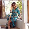 Sommer-Stil, florales bedrucktes böhmisches Strandkleid für Damen, elegantes, tiefes V-Ausschnitt, geteiltes langes Maxikleid, Vintage-Chiffon-Kleid