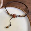 Keramische Rose gewebte Halskette Damen Sommer neues Mode-Retro-Accessoire kann lange Schlüsselbeinkette gezogen werden