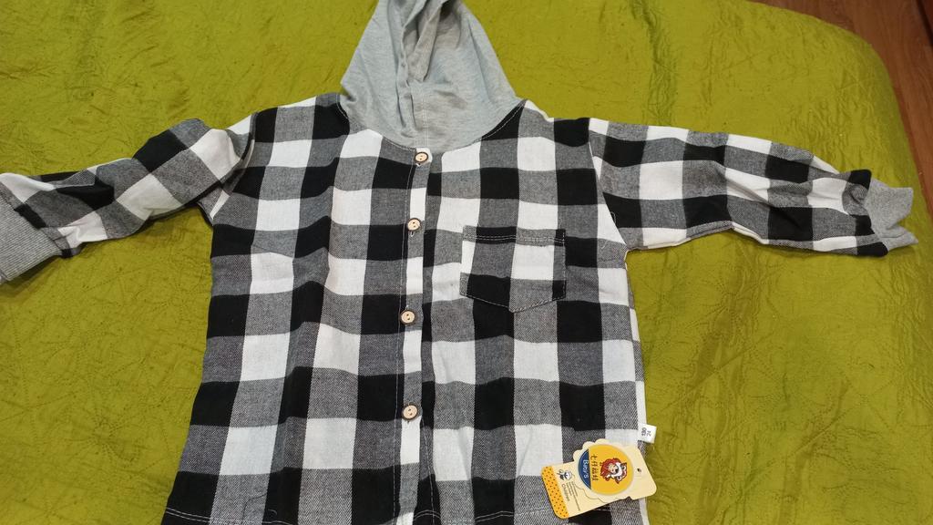 Hemd mit Kapuze. Ich habe es im Herbst-Frühling für mein Kind genommen. Geeignet für einen Spaziergang. Mein Junge wird es gerne tragen. Danke an den Laden.
