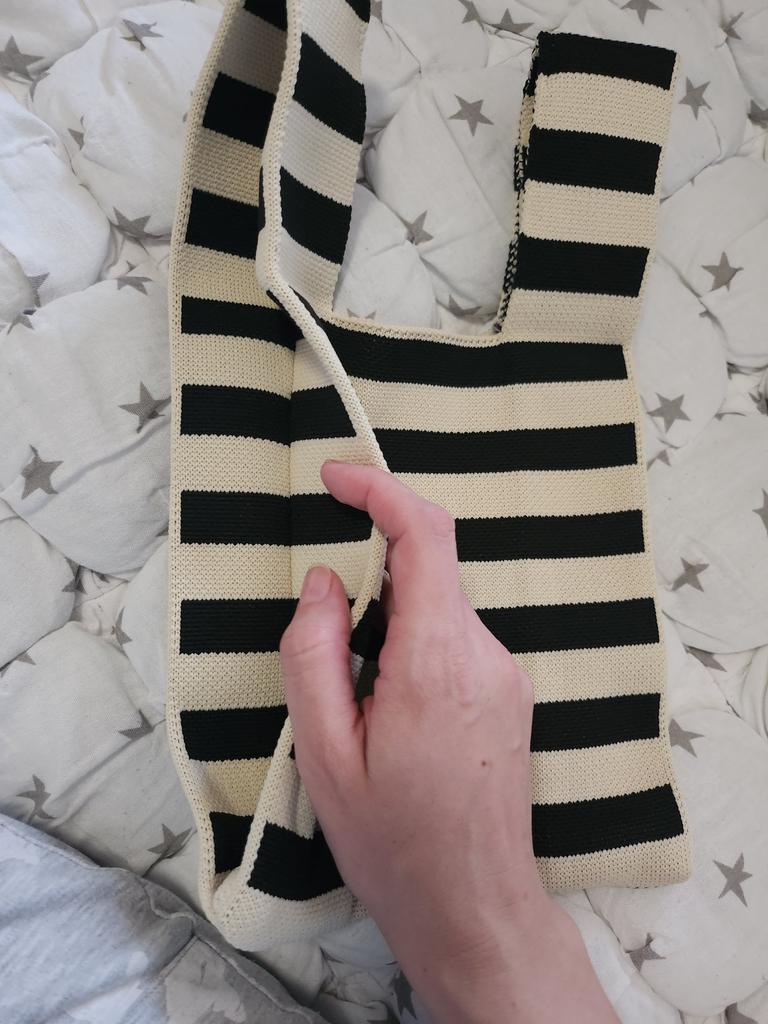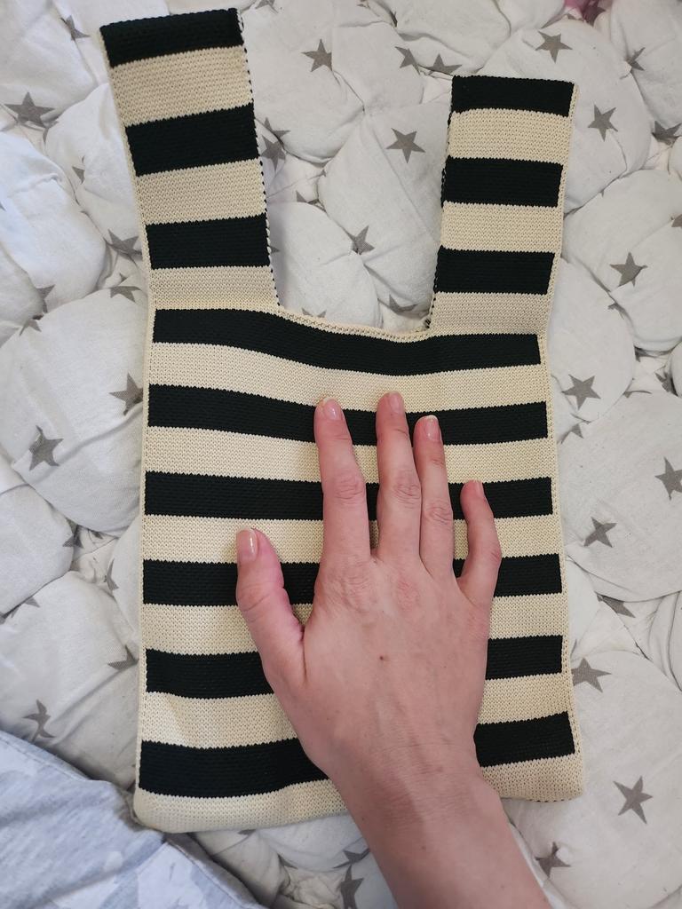Yogodlns Neue breite gestreifte handgemachte gestrickte Handtasche minimalistische koreanische Frauen Mini Knoten Handgelenk Tasche Einkaufstasche Student wiederverwendbare Einkaufstaschen