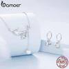 BAMOER 925 Sterling Silber Maiglöckchen Blumen Halskette Perlen Anhänger Tropfen Ohrringe Set Hochzeit Schmuck Geschenk