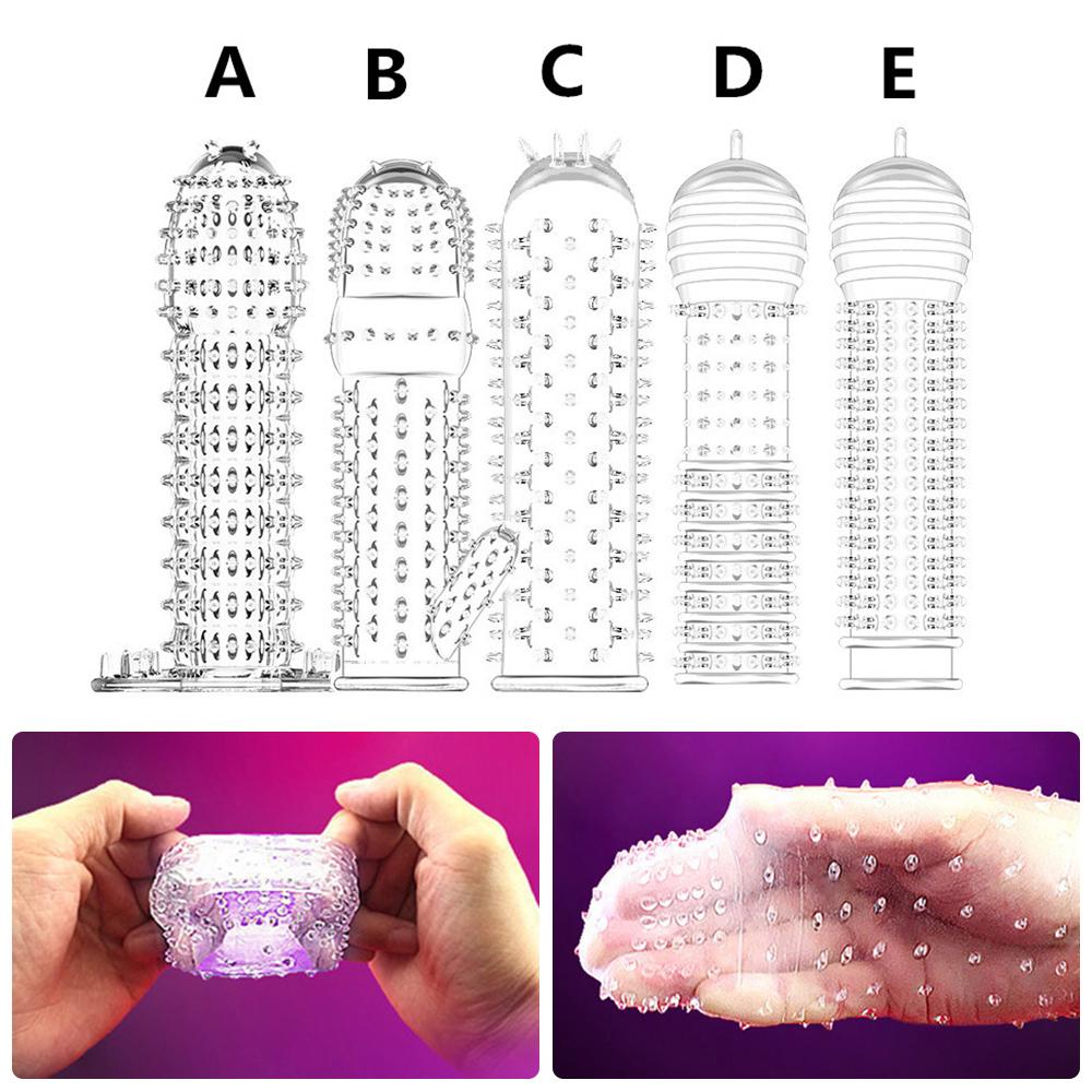 Wiederverwendbare Kondom Penis Hülse Männliche Erweiterung Zeit Verzögerung Spike Klitoris Massager Abdeckung Kristall Klare Kondome Erwachsene Sex Spielzeug