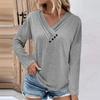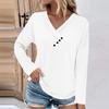 Damenmode, lässig, einfarbig, Brustbereich, gerüschter Knopf, V-Ausschnitt, lange Ärmel, langes Damenoberteil