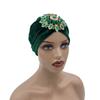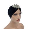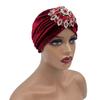 Luxuriöse Damen-Turban-Kappe aus Samt mit Strass und Blumenmuster
