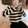 Gestreifte Strickjacke mit süßem Puppenhals, fünf Farben für warmes und frisches Äußeres, niedliche und trendige Pullover-Cardigan-Frauenoberteile