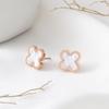 Ohrringe aus 18 Karat Roségold, Titanstahl, vierblättriges Gras, für Damen, einfache Muschel-Premium-Ohrringe