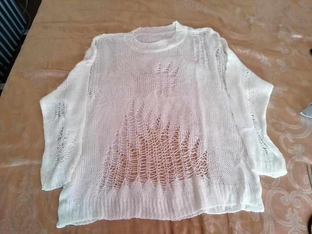 Ich habe einen Pullover erhalten, obwohl ich ihn nicht so nennen möchte, er ist leicht, luftig, stilvoll für den Sommer und zum Entspannen, der einzige Nachteil für mich ist, dass der Kragen etwas schwer ist, insgesamt ausgezeichnet, kann ich empfehlen