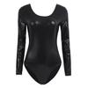 Frauen Erwachsene Glänzendes Lackleder Lange Ärmel Einteiliges Trikot, Figurbetonter Body Dancewear