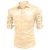 Wir stellen Ihnen unser Premium-Satinhemd für Herren vor, hergestellt aus hochwertigem, glattem, seidenähnlichem Stoff, der weich, leicht und atmungsaktiv ist. Das dehnbare Material sorgt für maximalen Komfort und Flexibilität. Dieses knitterfreie Hemd verfügt über einen Slim-Fit-Schnitt, lange Ärmel und einen klassischen Knopfverschluss für einen stilvollen und eleganten Look. Dieses vielseitige Hemd eignet sich perfekt für jeden Anlass und kann mit Anzughosen, Freizeithosen oder Jeans kombiniert und sogar unter einer Blazerjacke getragen werden. Dieses Hemd aus 100 % Polyester ist leicht und bequem und kann den ganzen Tag getragen werden. Das einfarbige Design verleiht Ihrem Outfit einen Hauch von Schlichtheit und Mode. Ob für Freizeitkleidung oder besondere Anlässe wie Hochzeiten oder Partys, dieses Satinhemd ist die perfekte Wahl. Es ist auch ein tolles Geschenk für Sie selbst oder Ihre Lieben.