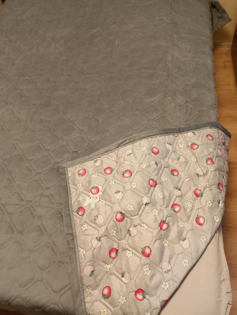 Die Decke ist noch schöner als auf dem Foto. Innen mit Stoff gesteppt, weich und nicht dünn. Ich empfehle sie.