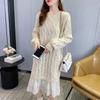 Kaschmir-Pullover-Kleid für Damen, Herbst und Winter, verdicktes mittellanges Spitzen-Strickkleid, warm, langärmelig, dehnbar, bequemer Pullover