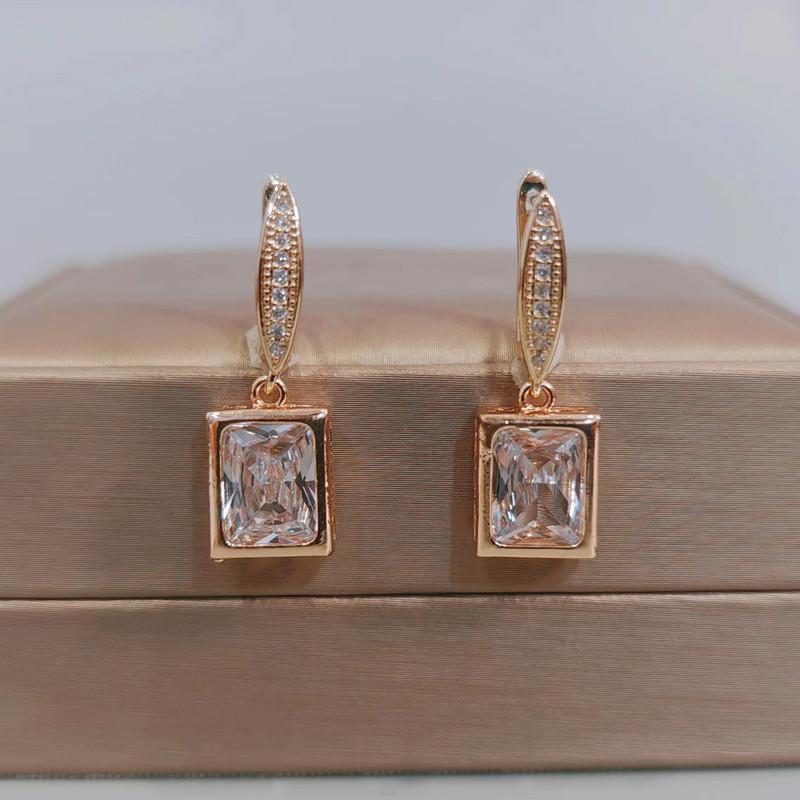 Rechteckige Weiße Kristall Zirkon Ohrringe für Frauen 2023 Neue Gold Farbe Ohrring Fashion Party Schmuck Zubehör