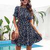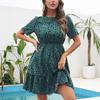 QICED Damenmode Sommer Frühling Leopardenmuster Kurzarm O-Ausschnitt Freizeitkleider